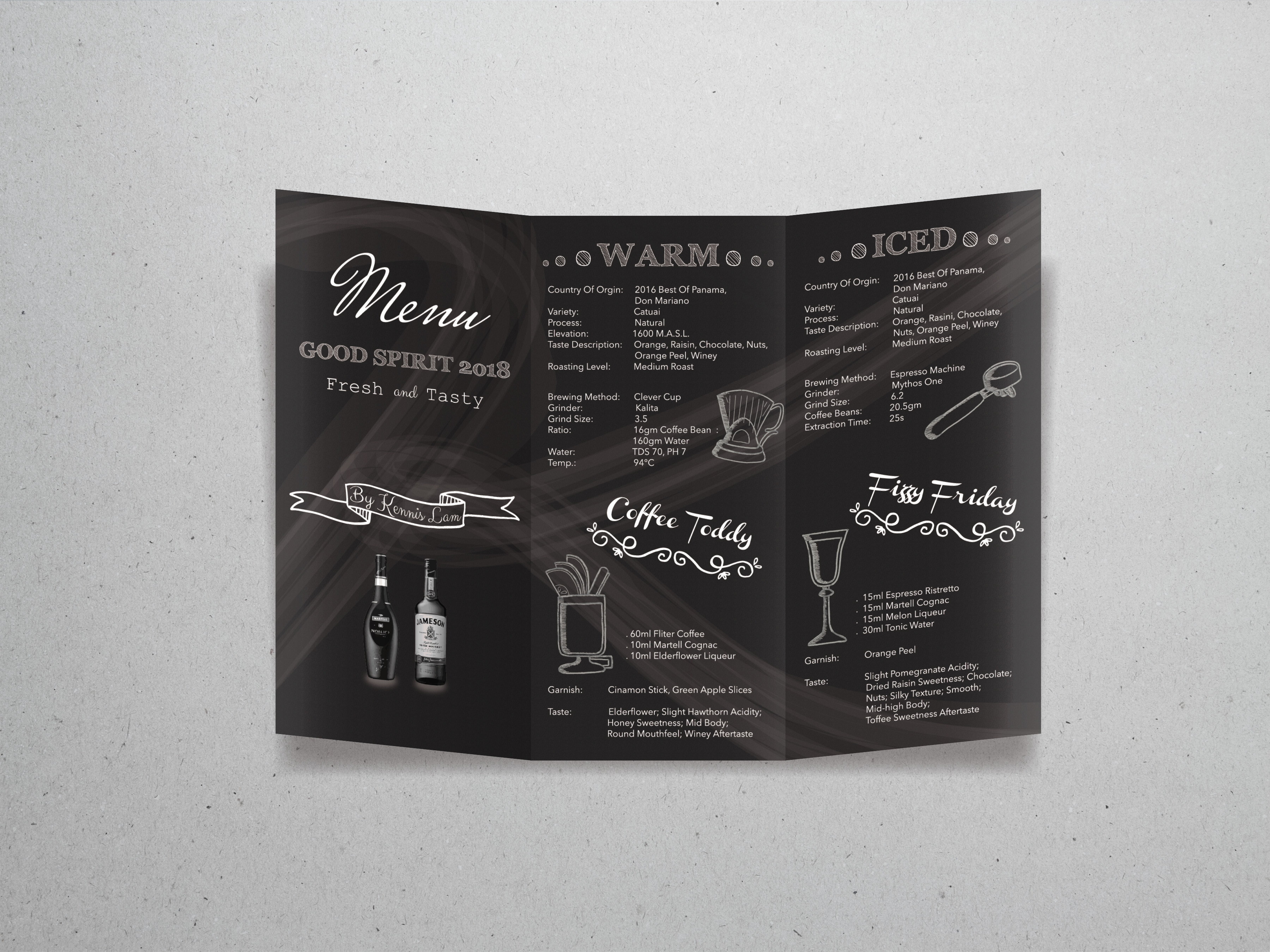 Drinking menu & recipe for Kennis, who was one of the candidates of 2018 World Coffee in Good Spirits Championship